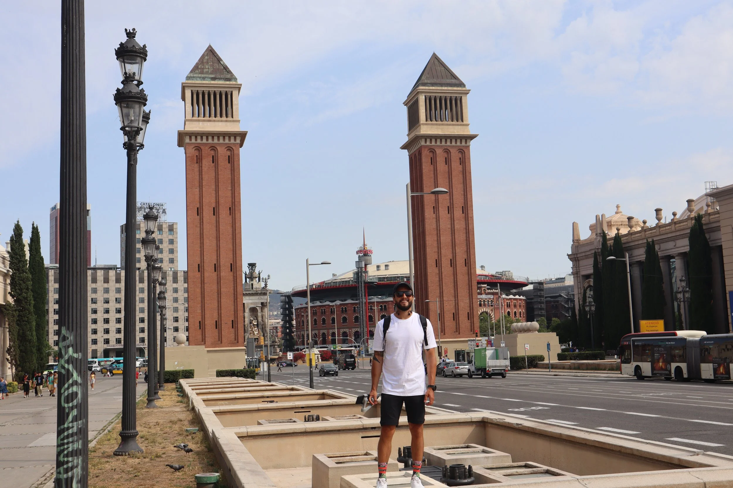 Nuestro recorrido por Barcelona comenzó en Plaza de España, un lugar emblemático que respira historia y grandeza. Esta plaza fue construida durante la Exposición Internacional de 1929, según el proyecto elaborado por el reconocido arquitecto catalán Josep Puig i Cadafalch. Su diseño impresionante combina elementos clásicos con toques modernistas, creando un espacio imponente y majestuoso.